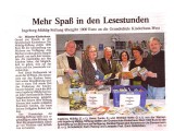 Spätestens seit den PISA-Studie ist der ganzen Bundesrepublik vor Augen geführt worden, von welcher zentralen Bedeutung frühes Leselernen ist. Aus diesem Grund würde die Schulleiterin der Grundschule, Frau Herzog, sich äußerst freuen, wenn unser Verein eine entsprechende Initiative zustande bringen würde. Auch Ihre Freunde und Bekannten sind willkommen!